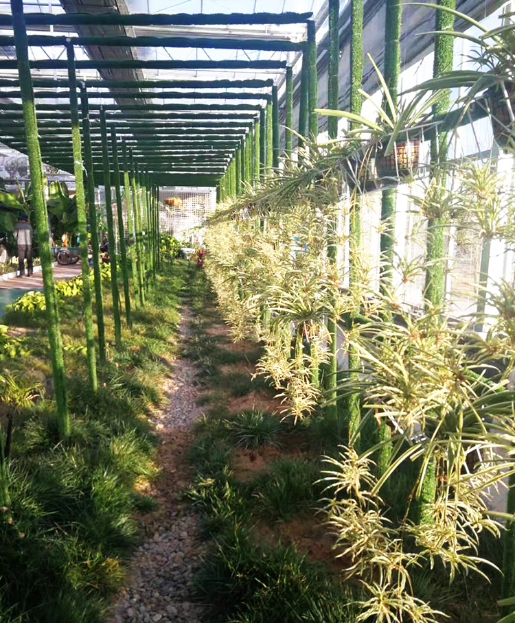 該智能溫室占地約6060平方米,種植的分別有盆栽花卉區(qū)、盆栽果樹區(qū)、沙生植物區(qū)、熱帶風(fēng)情區(qū)、家庭園藝區(qū)、無土栽培區(qū)、育苗區(qū)、采栽體驗區(qū)等功能區(qū)。溫棚內(nèi)移動苗床一次育苗30萬株,可供給巴彥霍德406座溫棚,一定程度上帶動了農(nóng)民增收。不論是熱帶植物、水果還是沙漠植物,冬天在這里你可以一覽無余,到處綠色生機勃勃。